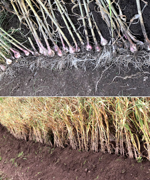 毎年早くは6月末、遅撒き種は梅雨明け後、収穫次第生ニンニクとしての販売になりますので、薬散布や乾燥機にかけての